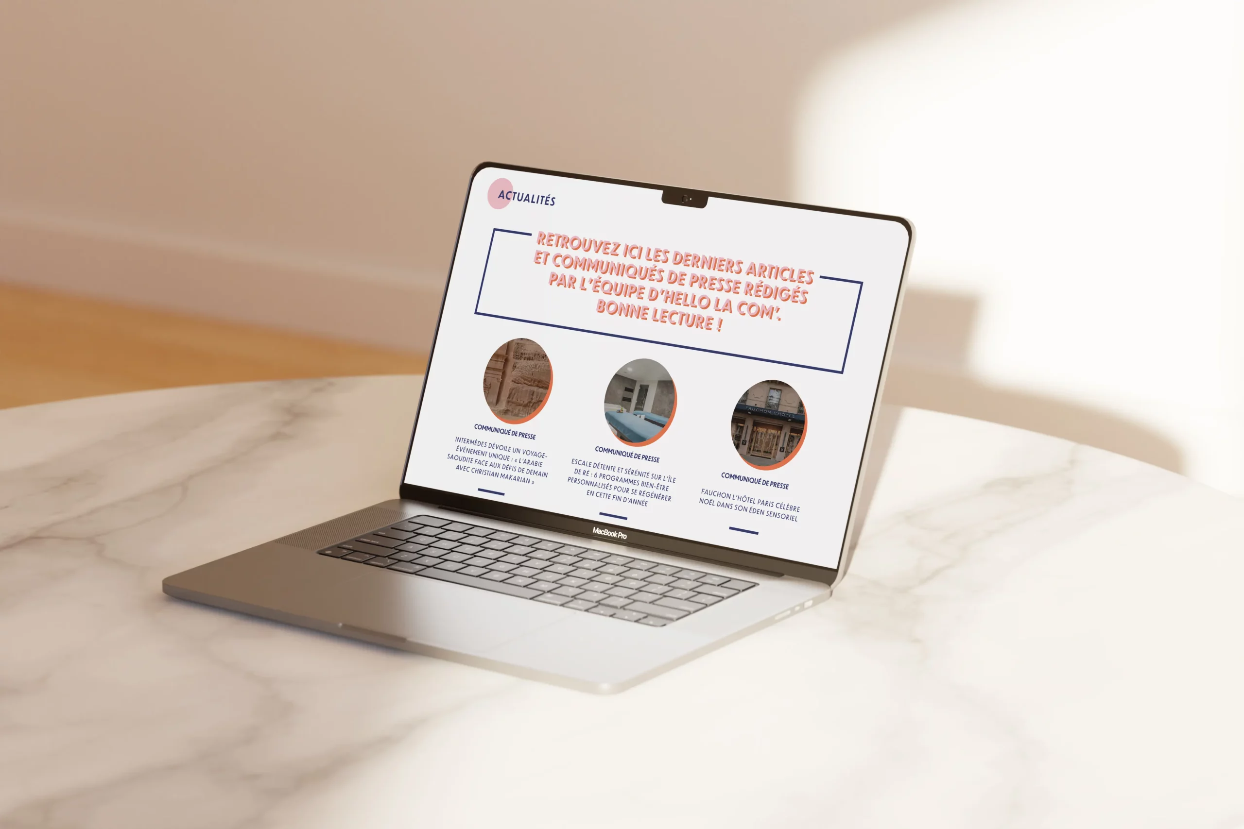 Depuis 2009, Hello La Com’ accompagne ses clients en relations presse et influence, avec une expertise reconnue dans l’univers lifestyle : tourisme, hôtellerie, gastronomie et décoration. L’agence souhaitait un site et un univers digital qui reflète à la fois son professionnalisme et son énergie pétillante.