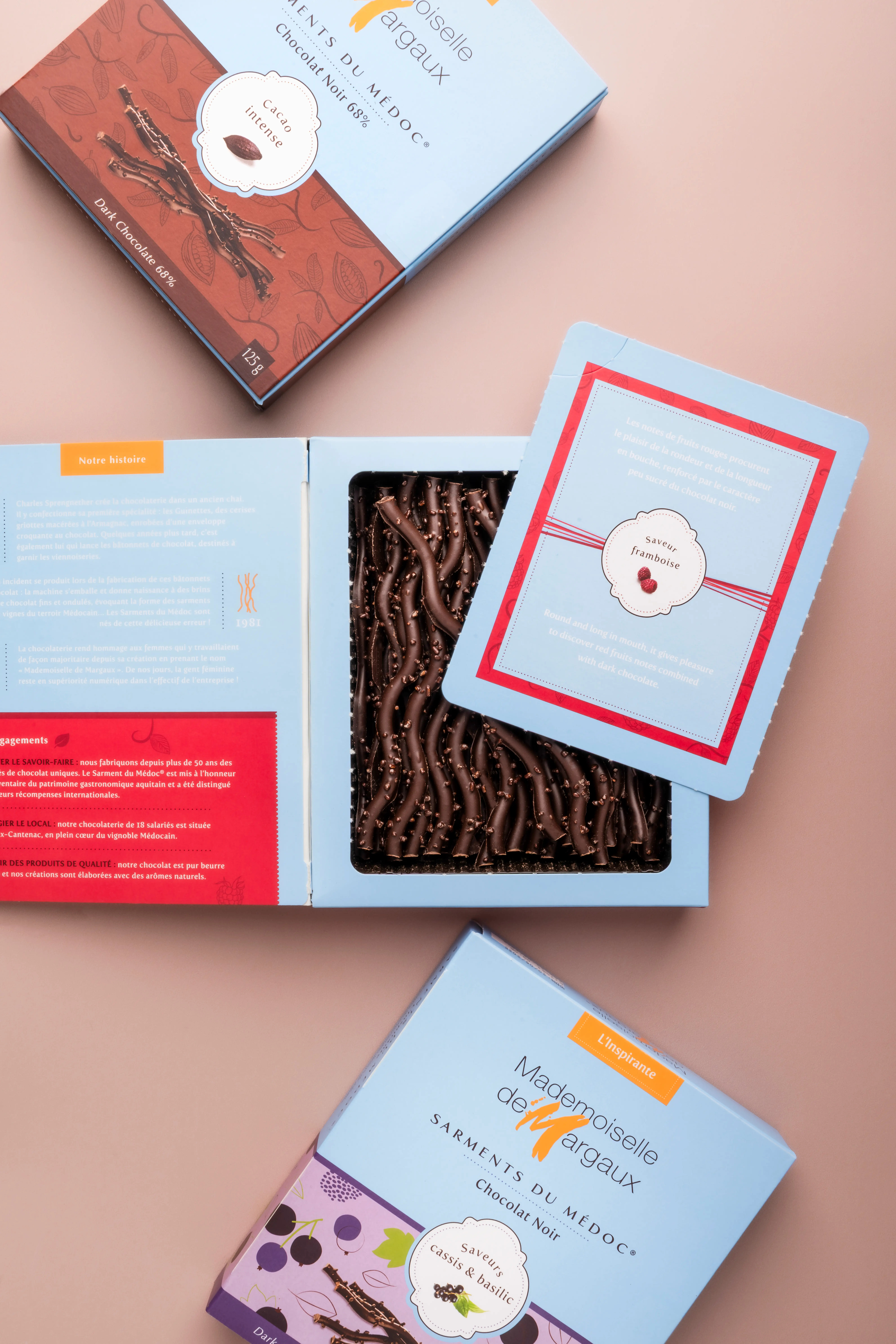 Mademoiselle de Margaux est née au cœur des vignes et porte en elle cet héritage avec fierté. Elle incarne l’élégance française, tout en cultivant une vraie liberté d’esprit. Curieuse et audacieuse, elle a choisi le chocolat comme terrain d’expression. Elle y associe des fruits, des épices, des herbes, joue avec les formes et les textures, et imagine des mariages inattendus pour éveiller la gourmandise.