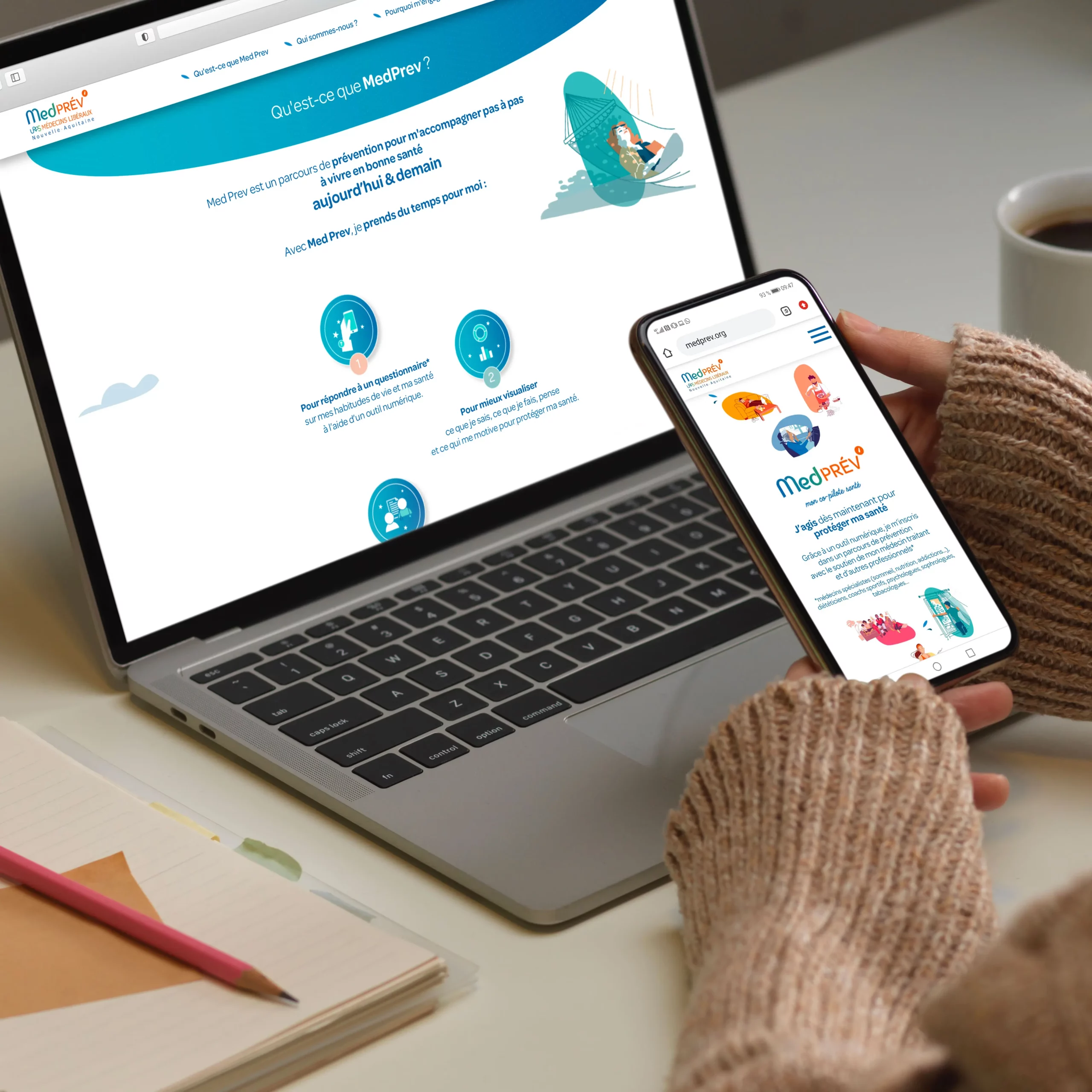 Avec cet univers, MedPrev’ gagne en visibilité et en lisibilité. Grâce au design le parcours paraît simple, accessible et engageant, donnant envie à chacun de s’y investir.