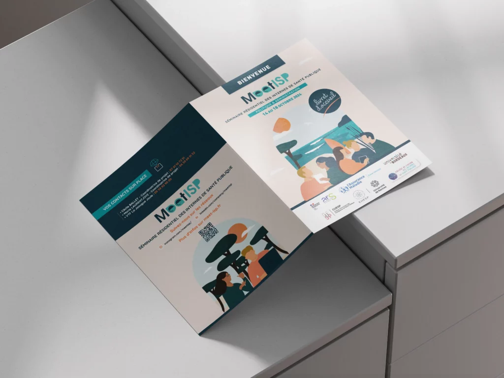 Un séminaire pensé pour les internes de santé publique. Naming Identité visuelle Illustrations Save the date Site internet Programme, tote bag… Le point de départ… Meet ISP est le séminaire national des internes en santé publique en phase socle. Organisé à Biscarrosse avec le soutien de l’Université de Bordeaux et de l’ARS Nouvelle-Aquitaine, il réunit […]